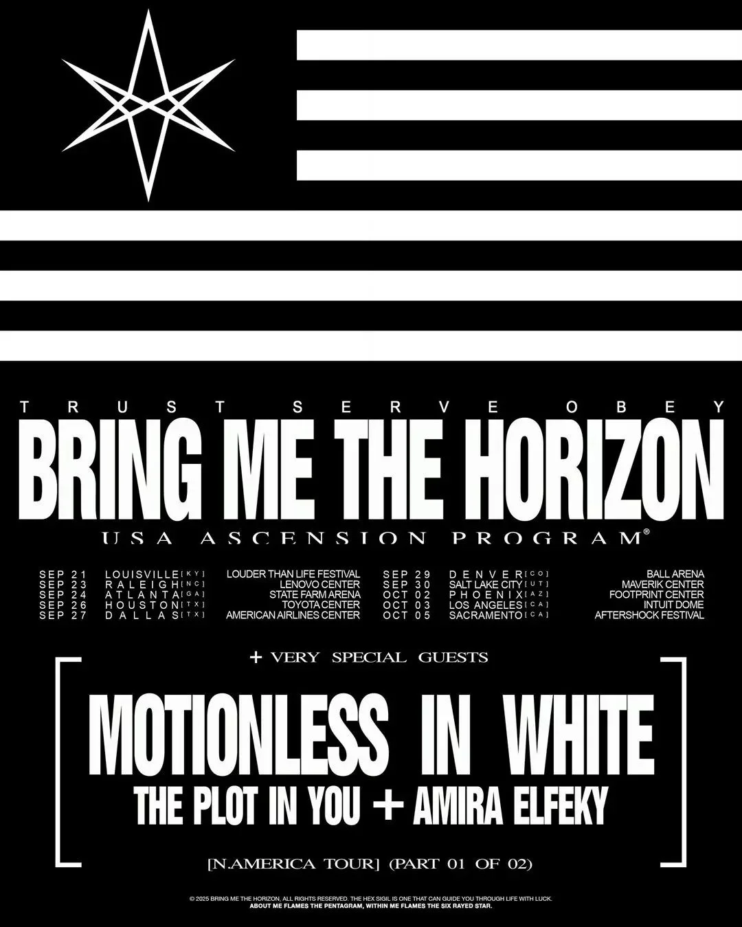 Bring Me The Horizon announced a fall North American tour with Motionless In White, The Plot In You, and Amira Elfeky. It’s an insane lineup that you don’t want to miss…except the tour is less than two weeks, and booked between two festival runs. Fortunately, the flyer states the tour is one of two, and we can only hope the second part has the same lineup.